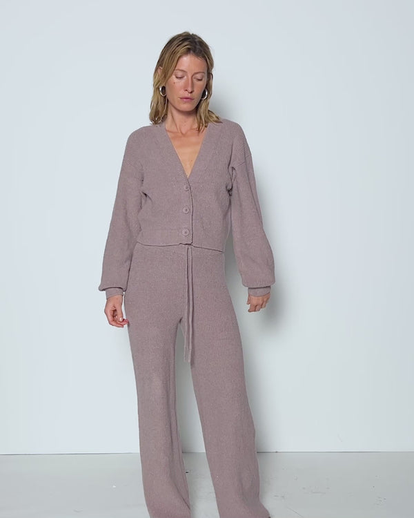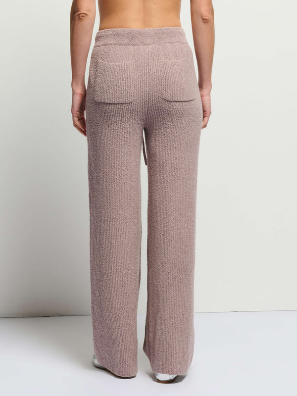 You’ll be living in these cozy ribbed pants featuring a waist tie, back patch pockets, and a straight-leg silhouette.