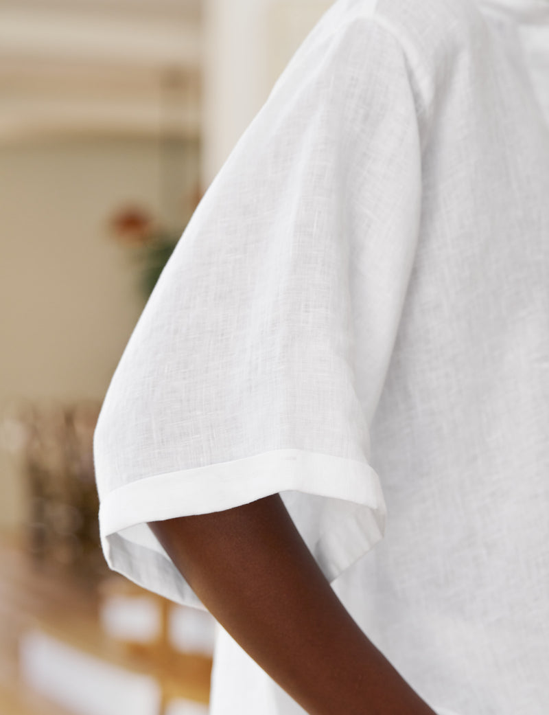 Say hello to the short-sleeve button-up you asked for…but not just any short sleeve! F&E spent years developing a crisp, elegant split seam silhouette that comfortably hits your arm at its most flattering angle. Plus, a step hem that you can wear tucked or untucked, with every kind of pant for maximum versatility. RUN for Rosie.