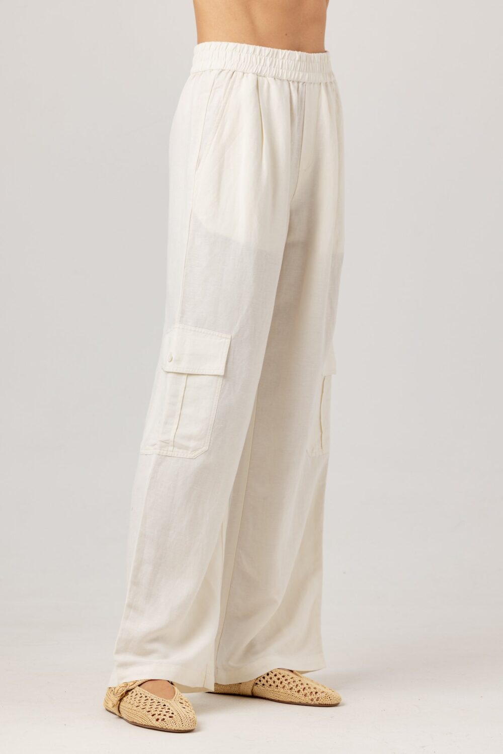 A modern update to the classic cargo, the Sabine Pant is crafted from a lightweight linen blend for easy, breathable wear. This full-length, pull-on style features a slightly slouchy fit through the hips and leg, an elastic waistband, and utilitarian-inspired pockets. With a 32” inseam, Sabine is effortlessly casual-chic. Pair it with the matching Fille Shirt for a laid-back set with a feminine edge.
