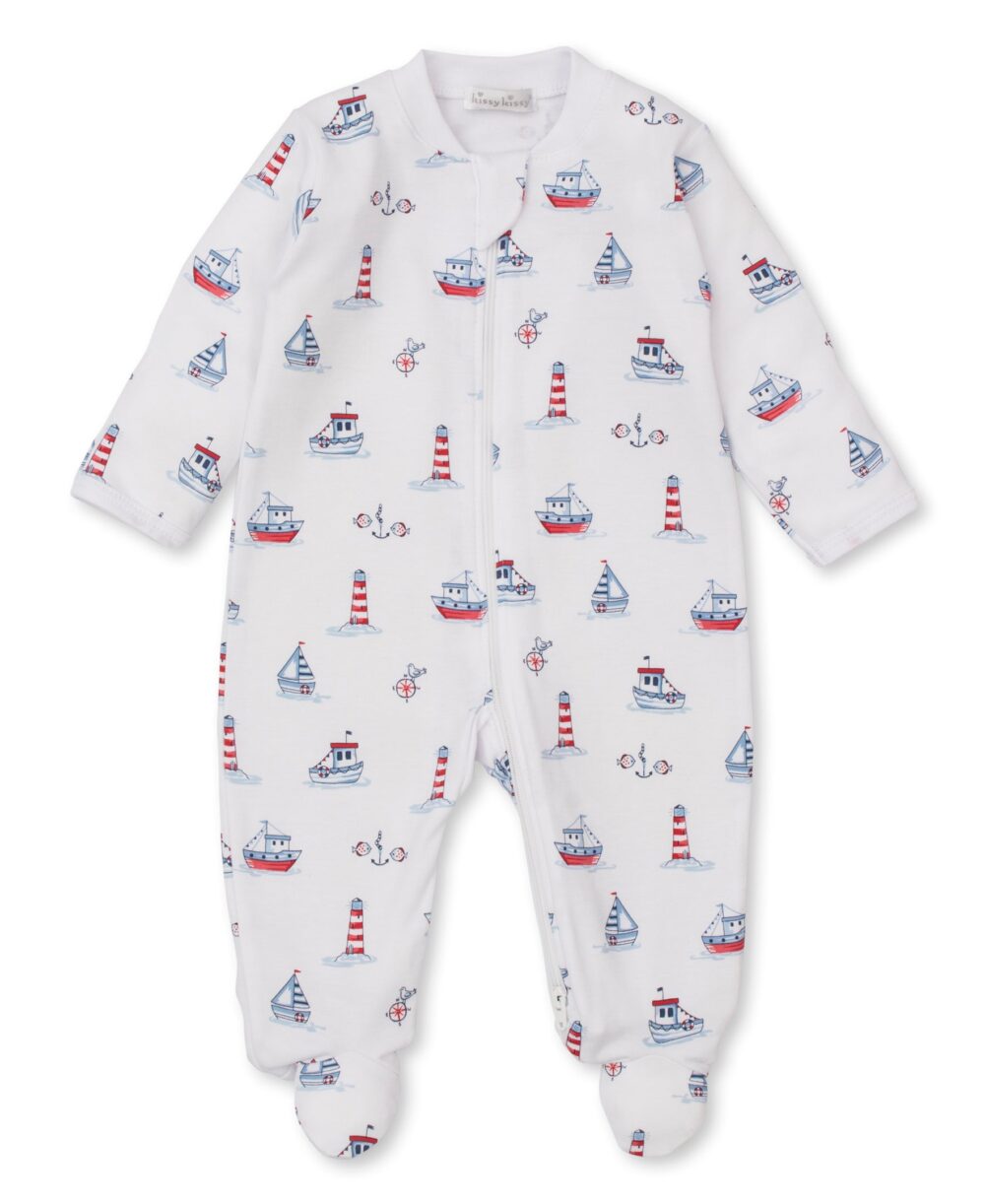 Playfully patterned with seas the day print, our cozy, zippered footie for your precious baby is made from the softest Pima cotton for ultimate comfort.