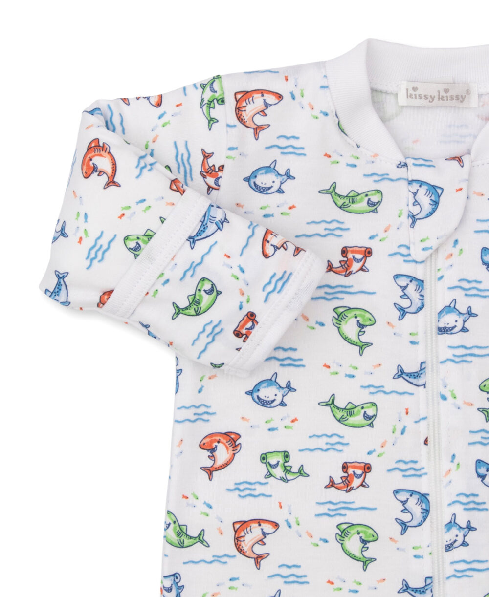 Your baby will be ready for a day of fun in this shark grins print zippered footie. Made from the softest Pima cotton for ultimate comfort.