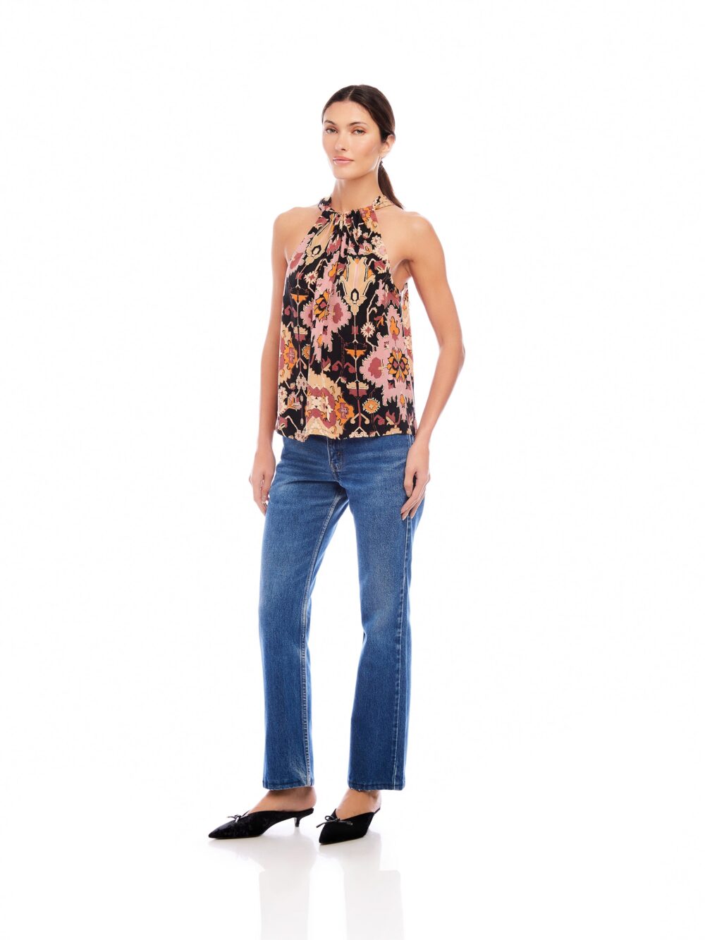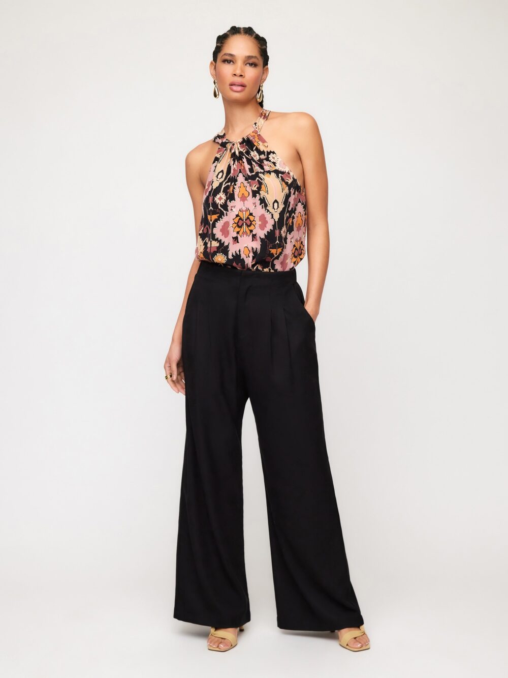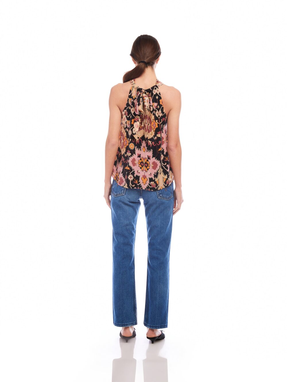 The Sicilie Tank is a versatile and stylish addition to any wardrobe. Crafted with a halter neckline and back tie, it provides a flattering and comfortable fit. The back slit detail and cupro fabric give it a unique touch, while the print material adds a pop of color. Perfect for any occasion.