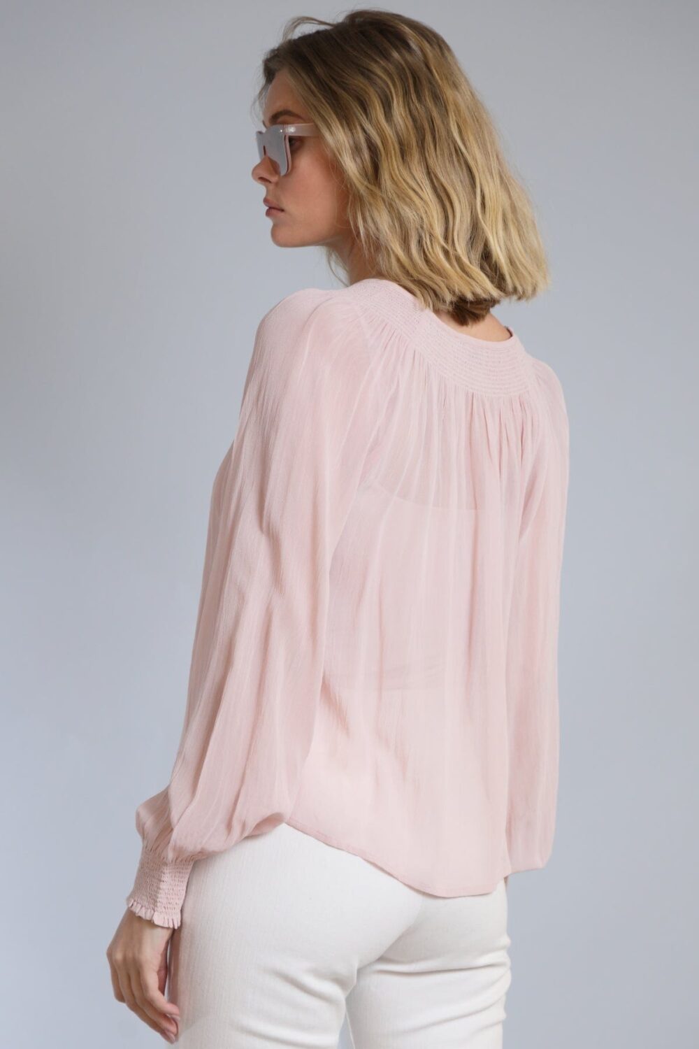 Smocked Neckline Long Sleeve Top – Wheat