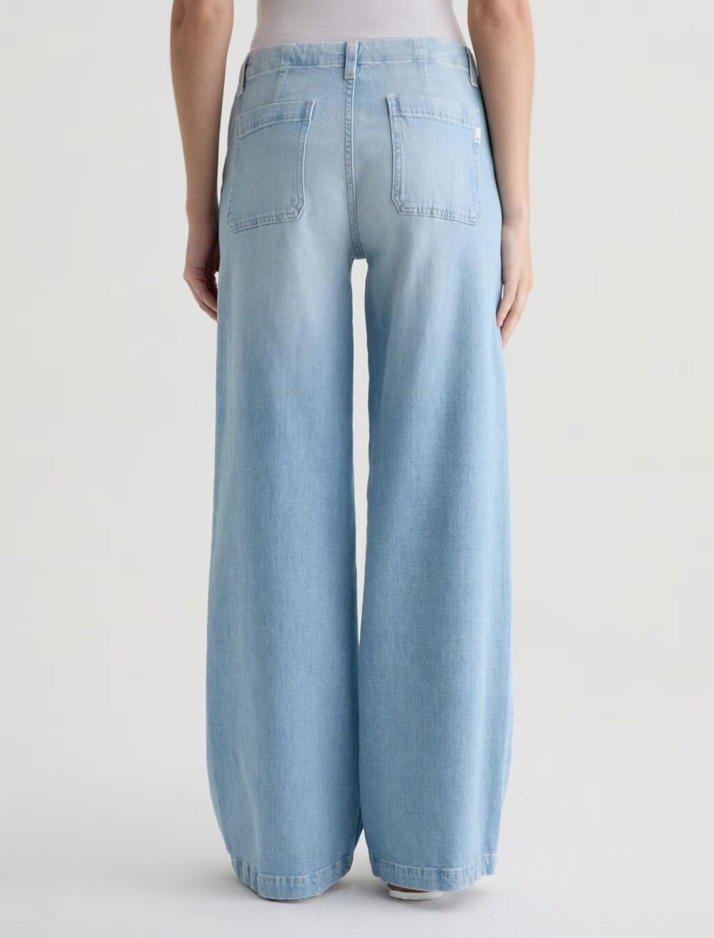 The Stella Cinched is a low-rise palazzo jean with a 32.5” inseam, made from Italian comfort stretch denim in a light wash. Designed with a subtle wide flare and an adjustable drawstring waist for a customizable fit.