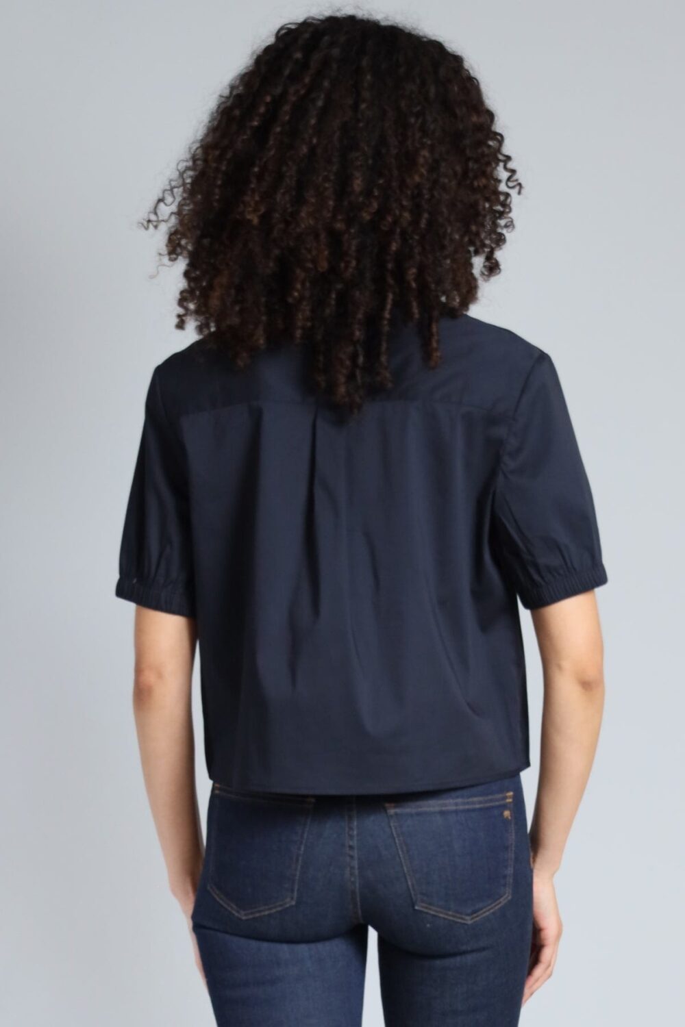 Stretch Poplin Cropped Button Down Shirt – Navy