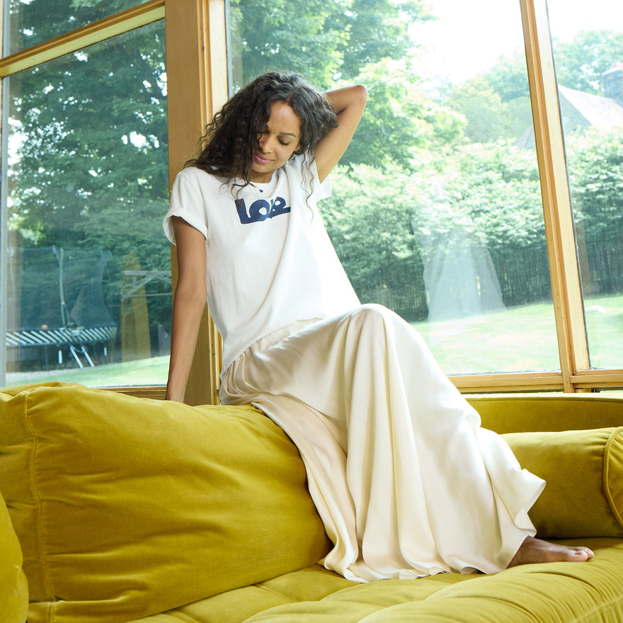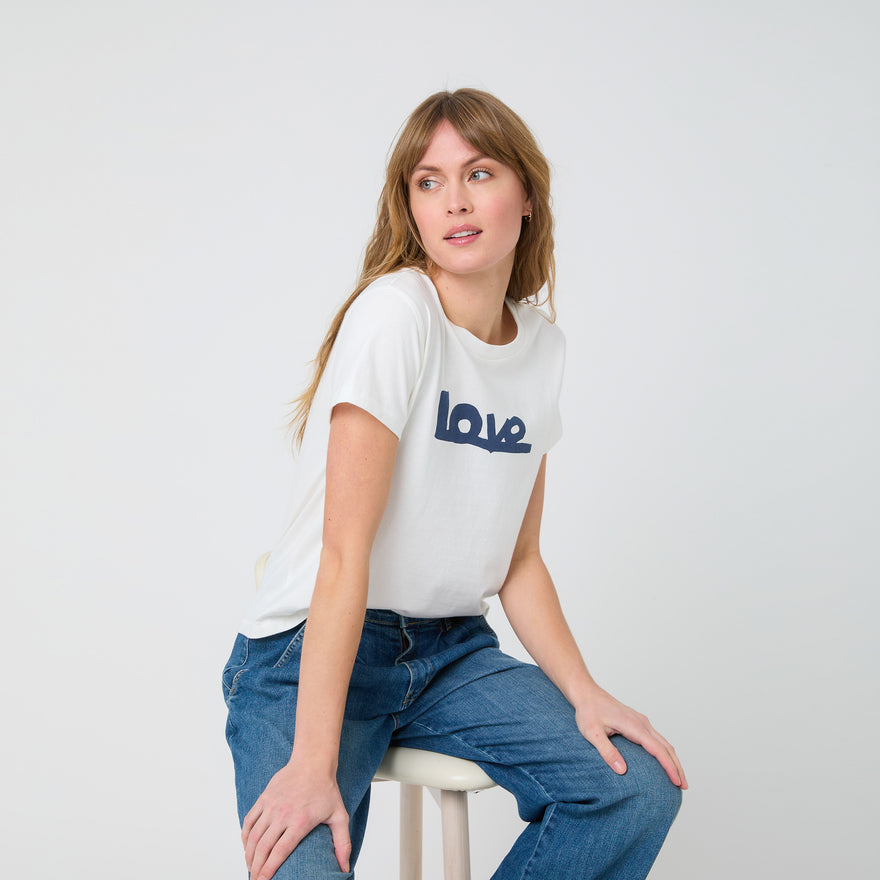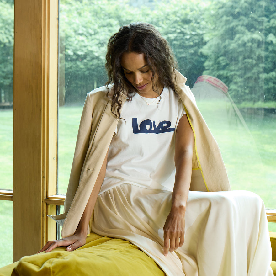 The Suke Tee is a KR classic. Suke Love Lines, features Kerri’s ‘Love’ graphic inspired by her original painting ‘Fall in Love’, making it an original basic that will act as a neutral piece in your closet. Instead of reaching for a plain white tee, reach for love and keep with you, all day long.
