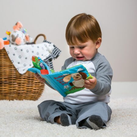 – 6×6″ Soft book featuring Taggies Molasses Sloth in a fun, calming, short bedtime story