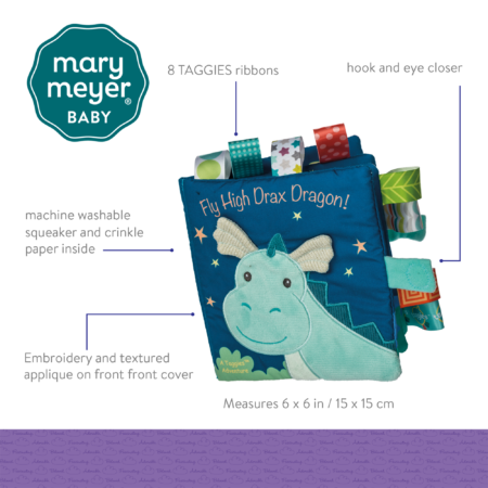 6×6″ Taggies was born over a decade ago when a mom noticed her child’s fascination with satin tags. This idea blossomed into a world of treasured products. Little ones are mesmerized by rubbing these soft, satin loops. Exploring Taggies textured tags can provide tactile stimulation that babies crave for development and have an amazing calming effect on little ones. Discover the secret too!