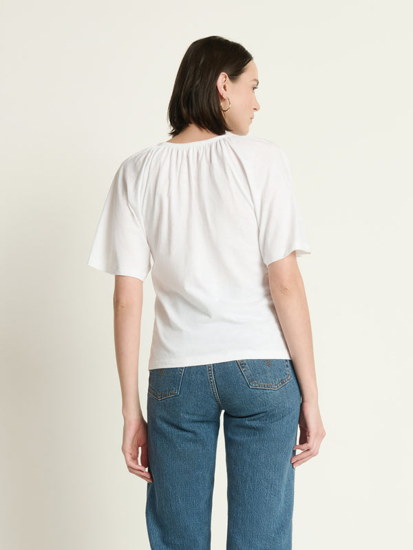 Your next favorite work top is here, and it’s made of 100% Pima Cotton. With a ruched neckline and a keyhole detail, this breezy short sleeve tee ups the chic factor in any outfit. This one comes in White.