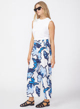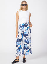 Stateside’s cropped trouser in tropical floral linen fabric with front pockets.