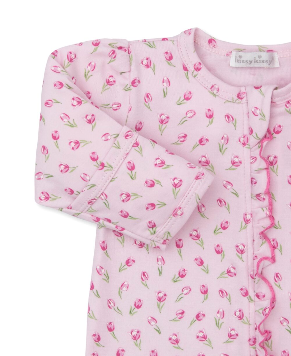 Playfully patterned, this cozy, tulip print zippered footie for your baby is made from the softest Pima cotton for ultimate comfort.