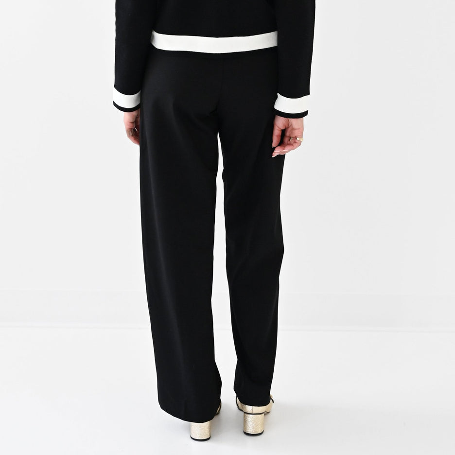 The wide leg trouser pant is made from the softest stretch ponte knit. These tailored slouchy pants are very comfortable and flattering, as if you are wearing sweats. Side zips on, with a faux front and belt hoops. Stretching all the way to the chicest casual elegance.