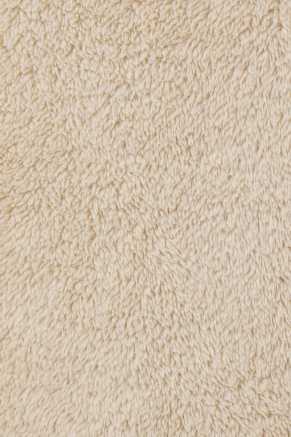The Wilder Jacket is a perfectly cropped jacket with symmetrical patch pockets, large folded collar and hidden snap front closures, constructed in incredibly soft fleece with printed fabric lining and finished with ribbon trim. Shown here in Oat and made from soft polyester.